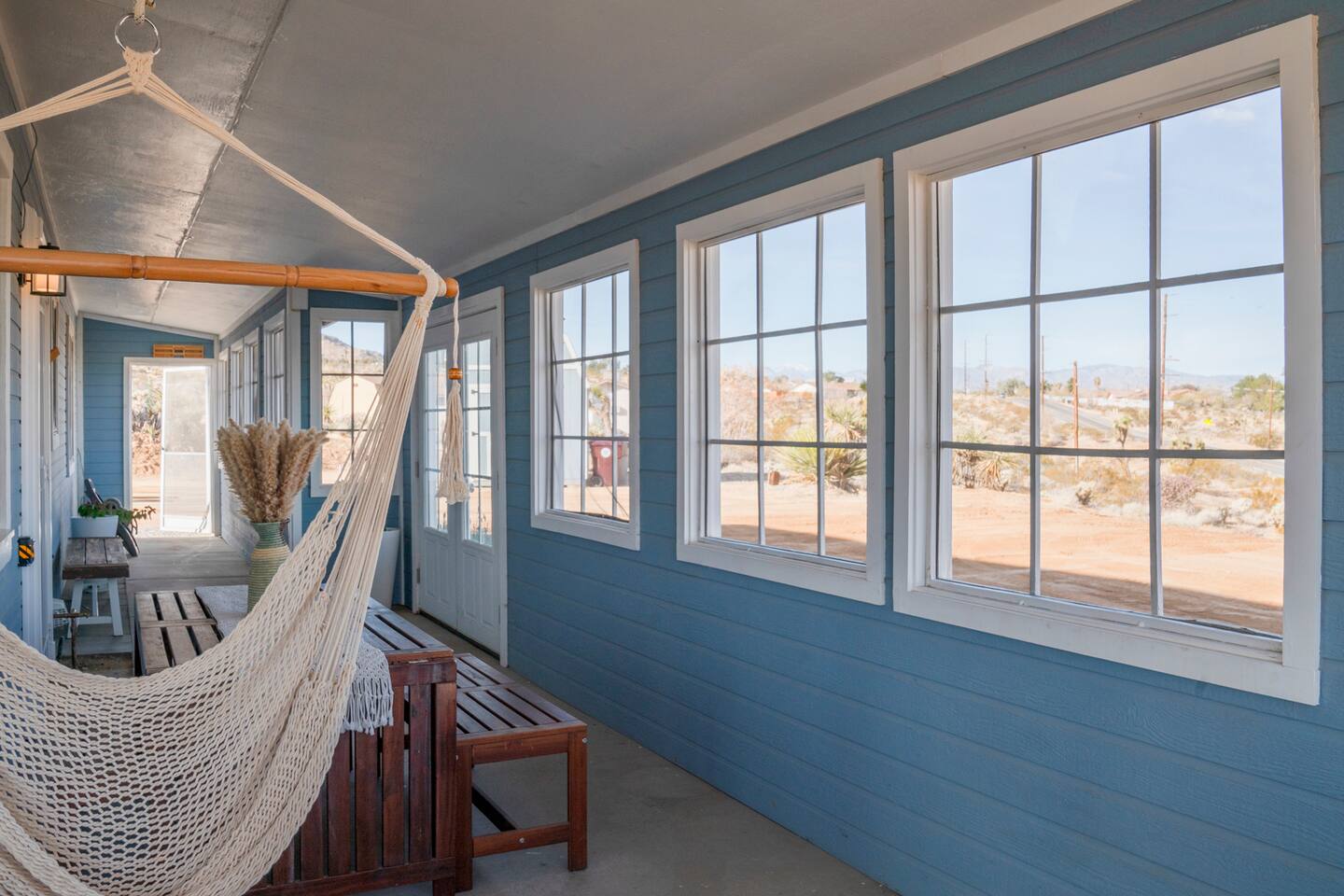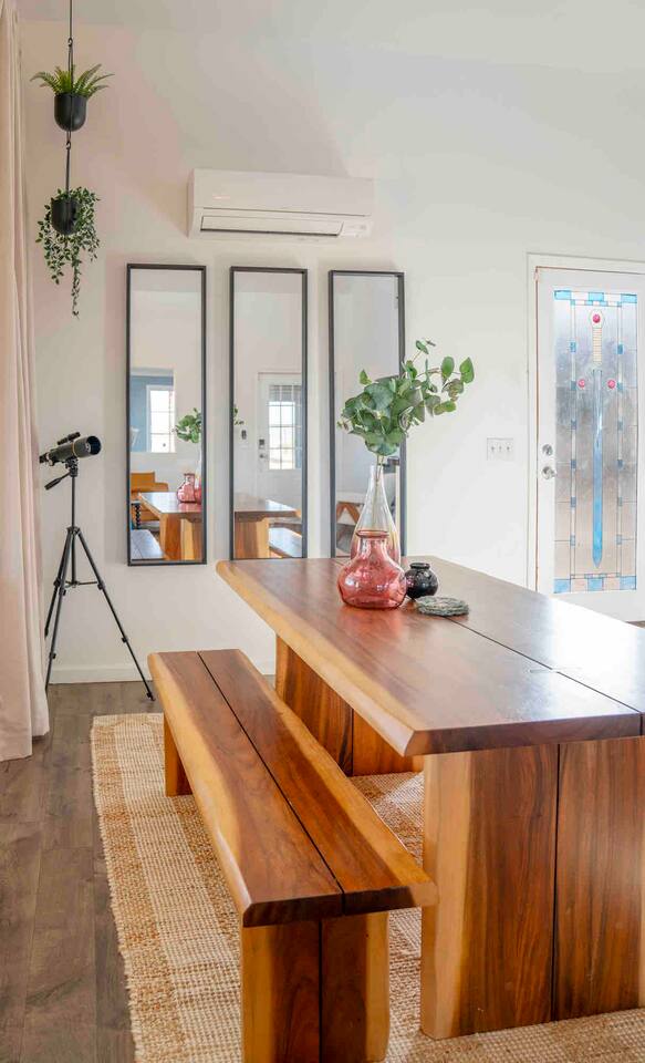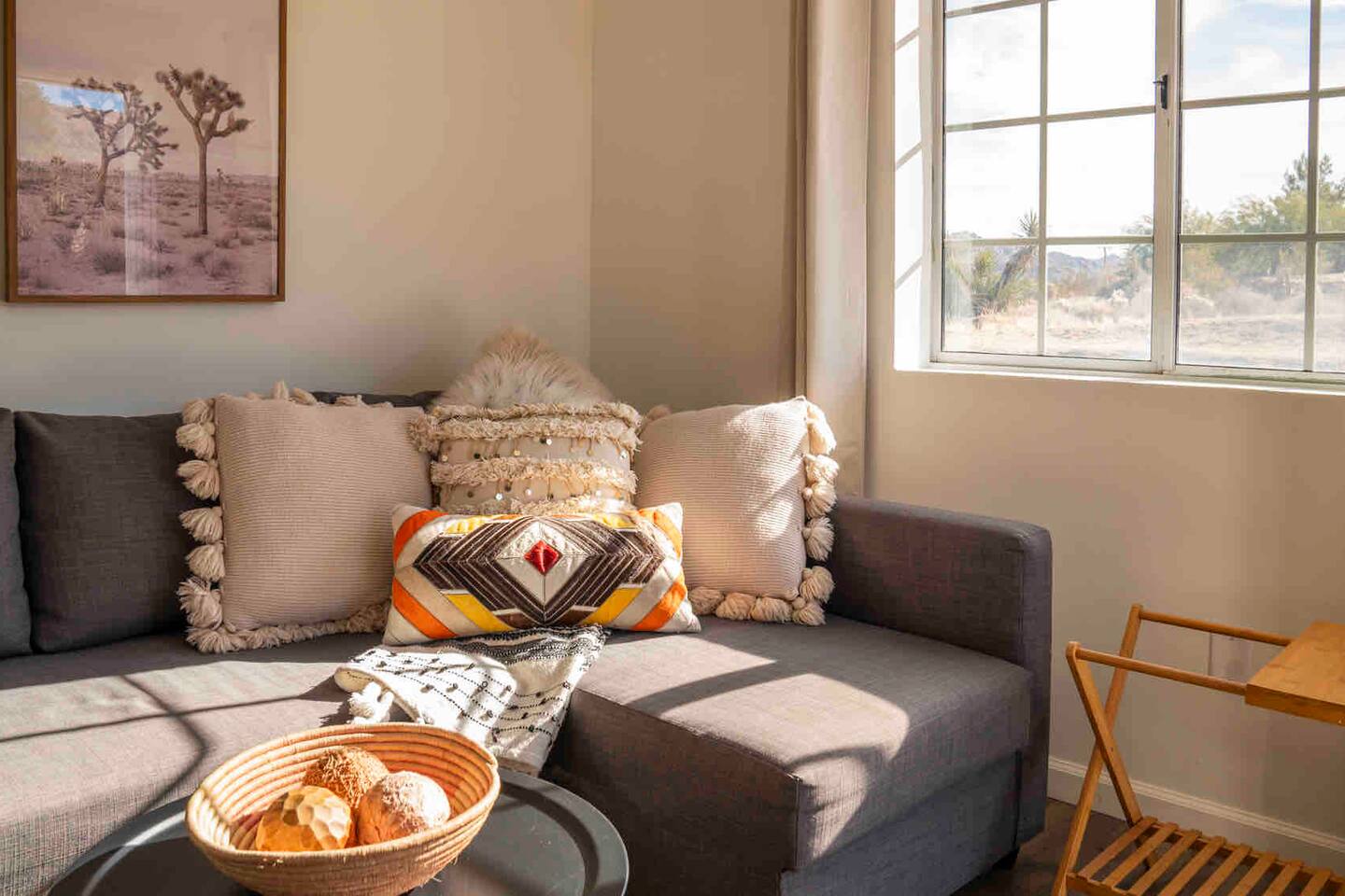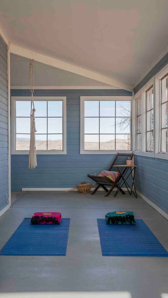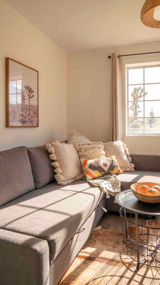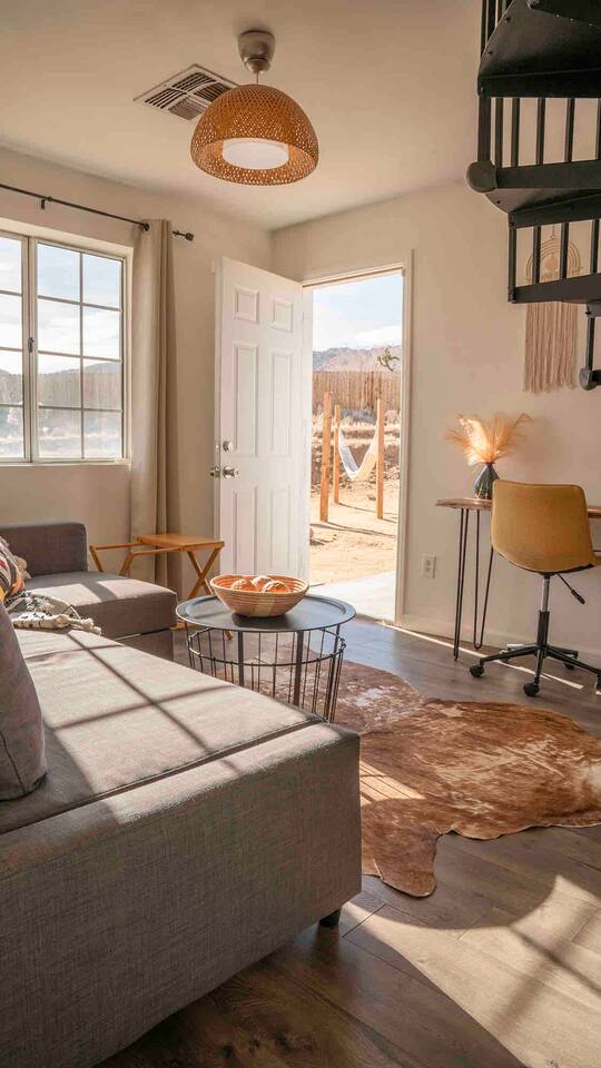 DOG FRIENDLY We’d love to host your pup too! There is a one-time pet fee; please add your dog to the reservation to see the additional fee. Bringing a pet without adding it to your reservation will result in the fee being charged via Airbnb’s Resolution Center. Maximum of 2 dogs. BACKYARD NOT FENCED & STREET NOISE The property sits on an open hilltop (unfenced) with expansive 360° views. It was recently redesigned with trees and privacy walls to create more seclusion, though the yard remains unfenced. The home is conveniently located off a main road to Joshua Tree National Park, so there is street noise from passing traffic. There may also be Mon-Fri construction on east side of property (not the pool and spa side) during Fall ‘25 through Spring ‘26. Guests seeking a fully secure yard, zero street noise or complete seclusion should consider this before booking. EARLY/LATE CHECK-IN & CHECKOUT Available for $50/hr with prior approval and subject to availability. Availability is determined 1–2 days out or even the day of for early check-in. For guaranteed arrangements further in advance or for day use rates, please contact us. CAPACITY The home is ideal for 4-6 guests but can accommodate up to 8 using the air mattress or porch bed. Please note there’s one full bathroom. ACCESSIBILITY The sunken living room requires one step down, and both bathrooms are on the first floor. FAMILY-OWNED This is our family’s second home and a labor of love. Your stay supports our small family business and local vendors. Thank you! ❤︎