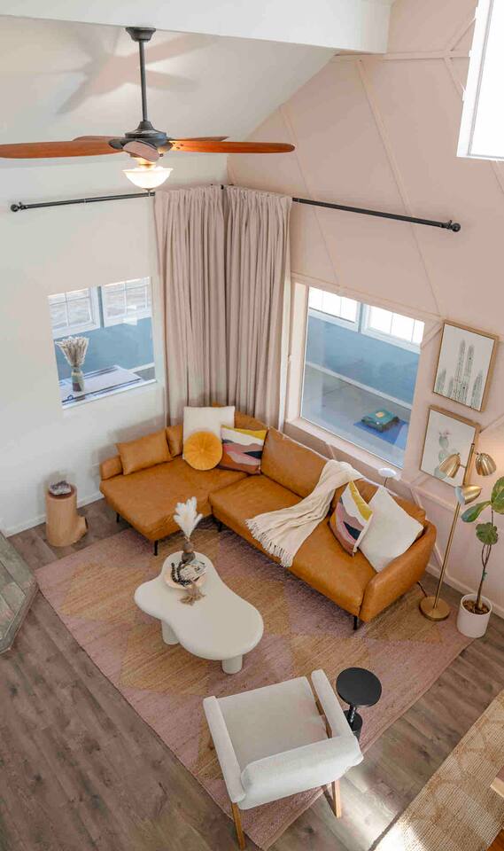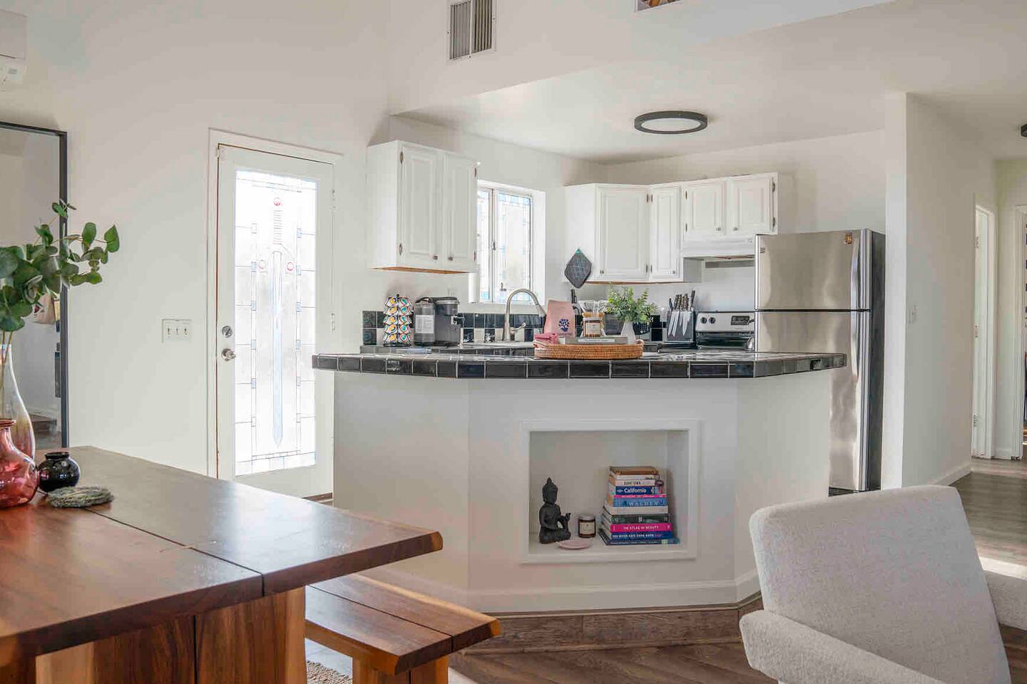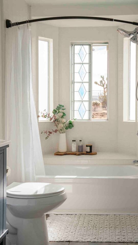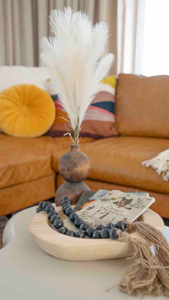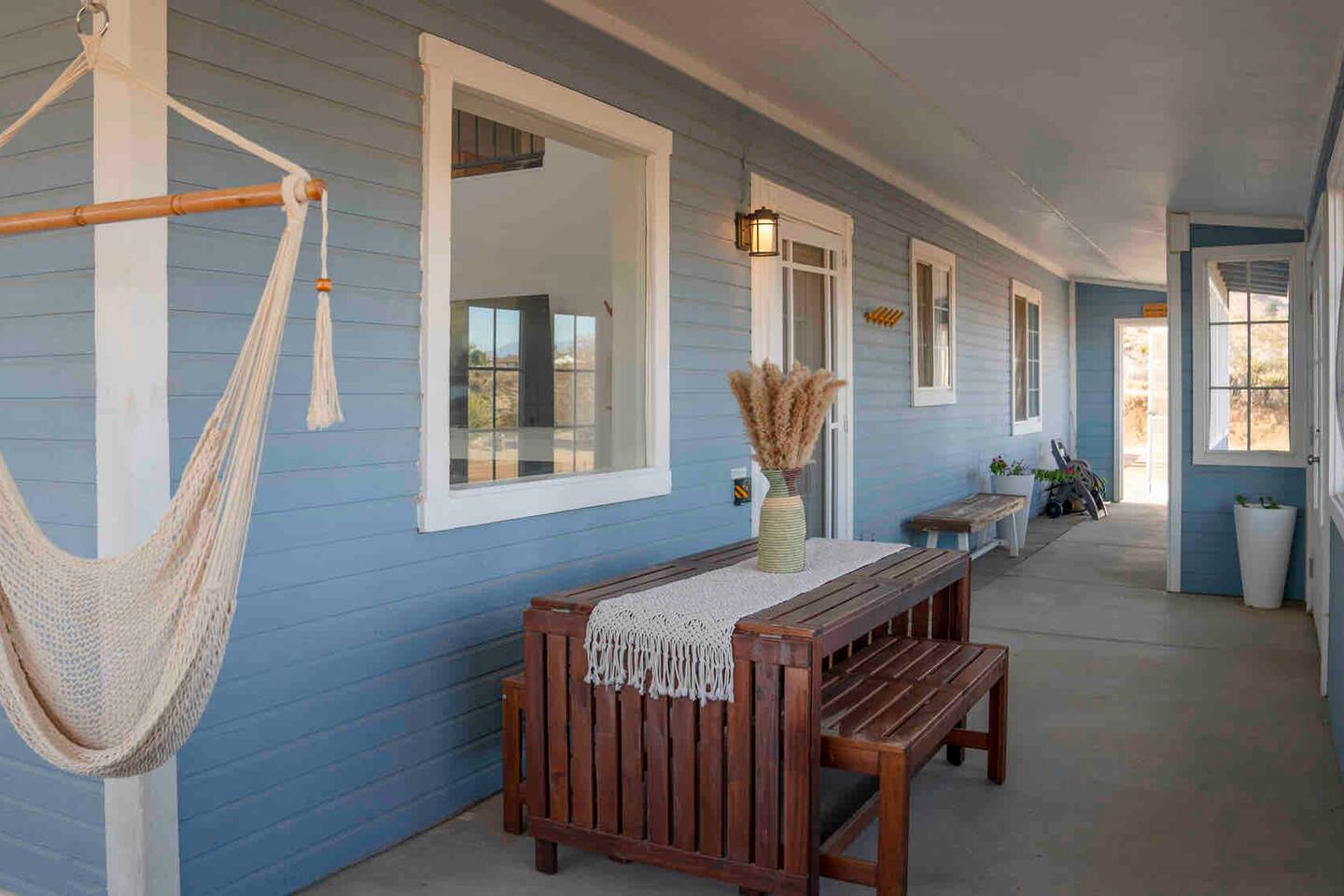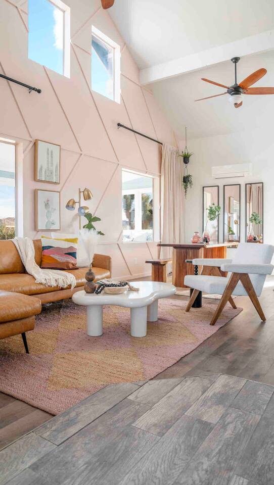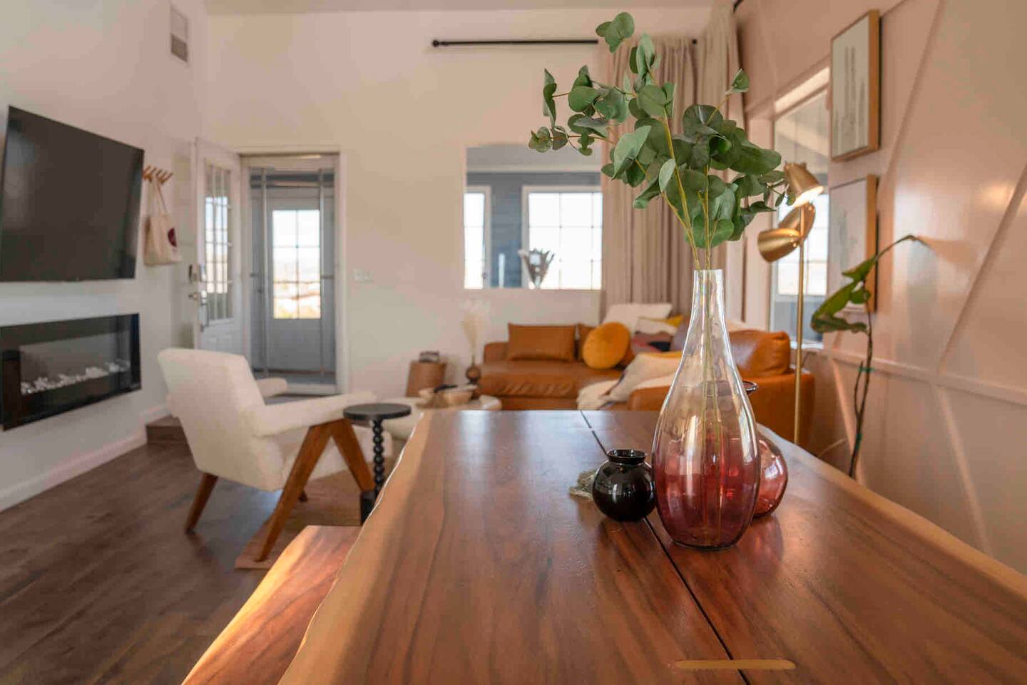 DOG FRIENDLY We’d love to host your pup too! There is a one-time pet fee; please add your dog to the reservation to see the additional fee. Bringing a pet without adding it to your reservation will result in the fee being charged via Airbnb’s Resolution Center. Maximum of 2 dogs. BACKYARD NOT FENCED & STREET NOISE The property sits on an open hilltop (unfenced) with expansive 360° views. It was recently redesigned with trees and privacy walls to create more seclusion, though the yard remains unfenced. The home is conveniently located off a main road to Joshua Tree National Park, so there is street noise from passing traffic. There may also be Mon-Fri construction on east side of property (not the pool and spa side) during Fall ‘25 through Spring ‘26. Guests seeking a fully secure yard, zero street noise or complete seclusion should consider this before booking. EARLY/LATE CHECK-IN & CHECKOUT Available for $50/hr with prior approval and subject to availability. Availability is determined 1–2 days out or even the day of for early check-in. For guaranteed arrangements further in advance or for day use rates, please contact us. CAPACITY The home is ideal for 4-6 guests but can accommodate up to 8 using the air mattress or porch bed. Please note there’s one full bathroom. ACCESSIBILITY The sunken living room requires one step down, and both bathrooms are on the first floor. FAMILY-OWNED This is our family’s second home and a labor of love. Your stay supports our small family business and local vendors. Thank you! ❤︎