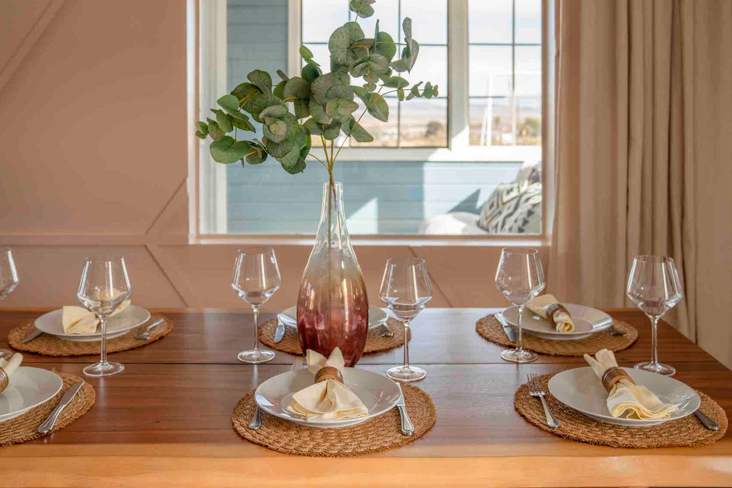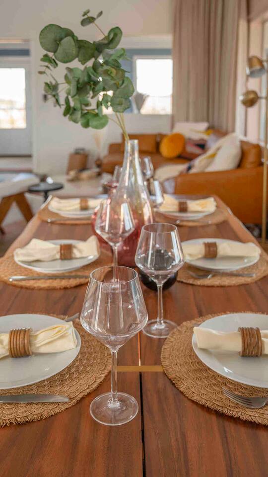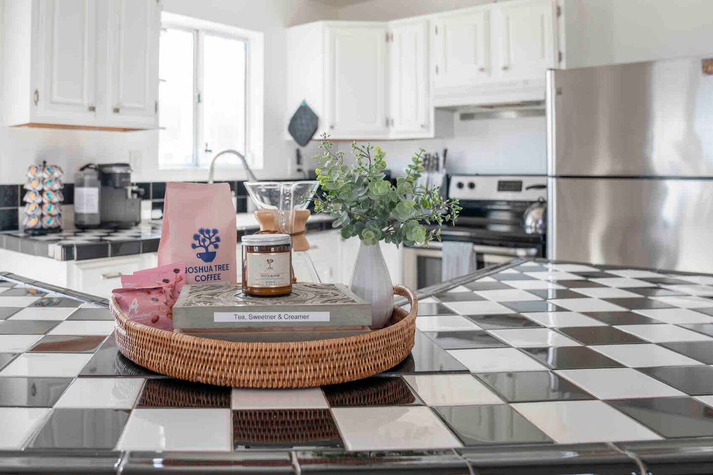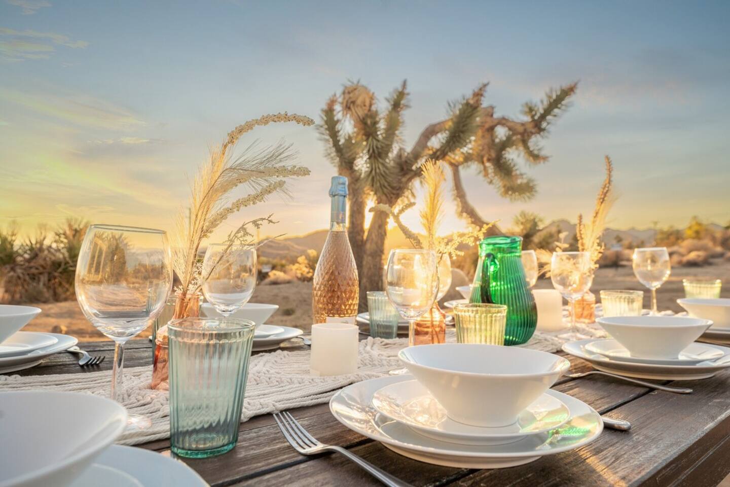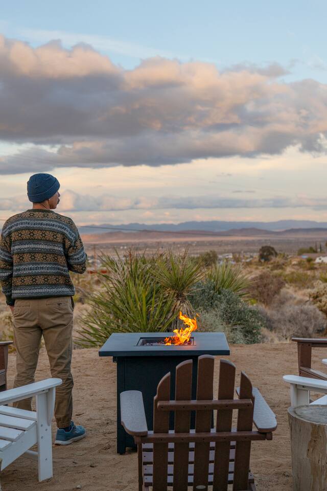 ✌︎ Features at a Glance ✌︎ ⎯Professionally designed interiors ⎯360° desert views, sunrises, and sunsets ⎯Heated spa 24/7 ⎯Cowboy pool for cooling ⎯Loft king suite with spiral staircase ⎯Private king bedroom with attached half bath ⎯Office with pullout bed for additional guests ⎯Multiple outdoor seating areas for sunrise, sunset, and stargazing ⎯Wraparound covered porch with yoga space and indoor-outdoor sleeping ⎯Swing set, hammocks, firepit, cornhole, and giant Jenga ⎯Telescope for stargazing ⎯65” Smart TV with fireplace ⎯Fully equipped kitchen with local Joshua Tree coffee ⎯Powerful heating & AC in each room ⎯Dogs welcome (see details below) The Desert Julep is newly remodeled and professionally designed in a dreamy, California desert style with natural elements and luxury vibes that highlight the magic of the high desert. Bright, airy, and infused with desert-inspired décor, the home features twenty-foot ceilings, abundant natural light, and a seamless indoor-outdoor flow. The expansive, breezy, and covered wraparound porch offers uninterrupted views and is one of a kind — perfect for indoor-outdoor sleeping, yoga, or dining. Step outside to swing under the sunrise, sit by the fire, soak in the spa or cowboy pool while watching the sun set, or stargaze from the hammocks. Desert Julep is perched on a hilltop where Joshua Tree’s beauty surrounds you from every angle. Step inside to an open-concept living and dining area with a fully equipped kitchen, comfortable seating, a 65” smart TV, and an electric fireplace. Guests love the peaceful nooks for reading, board games, or simply enjoying the desert scenery through expansive windows. ⛺︎ Bedrooms & Bathrooms ⛺︎ Rest deeply in two king bedrooms, including our loft suite with sunrise views from bed. A spiral staircase connects the loft to the office, which serves as an additional sleeping area with a pullout bed. Each bedroom is outfitted with premium bedding, soft organic sheets, and cozy pillows. The main bathroom features a soaking tub with Joshua Tree views, bath salts, and bubble bath for a spa-like experience. A half-bath off the first-floor bedroom adds convenience and includes laundry facilities. ☀︎ Outdoor Oasis ☀︎ Desert Julep’s outdoor space is a true desert playground with multiple seating areas designed for sunrises, sunsets, and stargazing: ⎯Sunrise spots: swing set, wraparound porch, firepit, hammocks ⎯Sunset spots: pool and spa and hammocks too ⎯Stargazing spots: everywhere, with hammocks as a favorite ⎯Cowboy pool (for cooling) and 24/7 heated spa ⎯Swing set and hammocks ⎯Telescope for stargazing ⎯Firepit & BBQ ⎯Cornhole and giant Jenga ⎯Wraparound covered porch with dining, yoga space, and breezy Mojave Desert views Ready to experience the magic at Desert Julep? Reserve your dates today before they’re gone! Still thinking it over? Tap the ❤ to save and come back anytime. Staying at Desert Julep isn’t just about finding a place to sleep — it’s about immersing yourself in the desert. Every detail, from sunrise views to stargazing through the telescope, has been designed to create a memorable experience. Having grown up in the desert, gotten engaged and married here, and then buying this forever home, we’re committed to making your trip to Joshua Tree unforgettable too.
