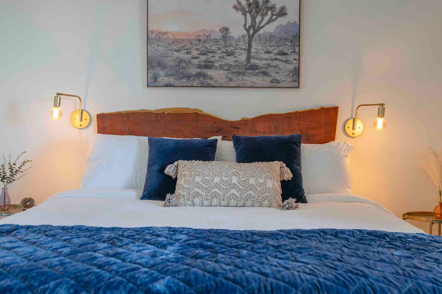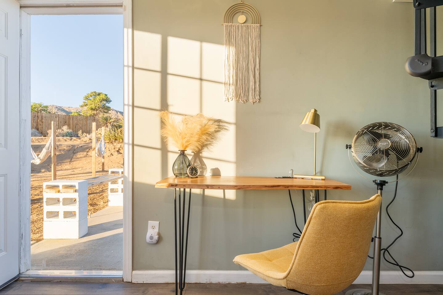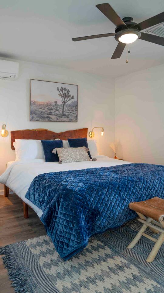 The home is just 3 minutes away from Joshua Tree's shops and restaurants and a quick 8-minute drive to the entrance of Joshua Tree National Park. We are located off one of the main roads that leads to the park entrance for quick and convenient access to Joshua Tree National Park.